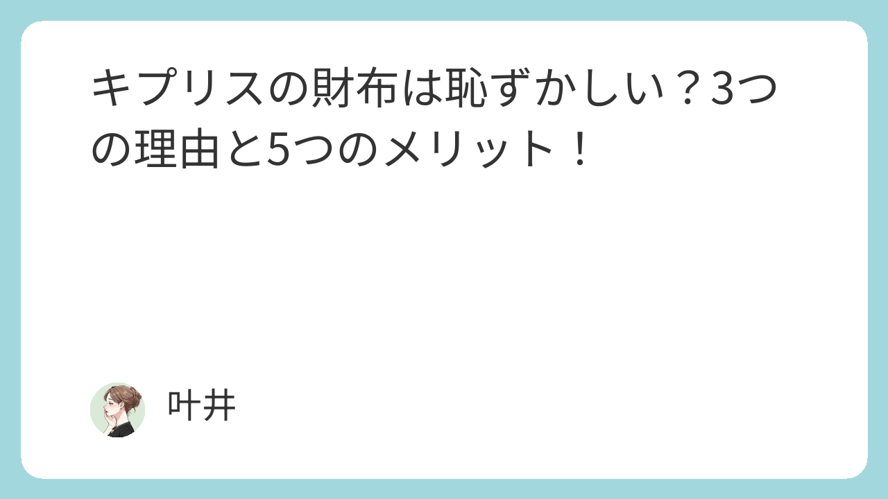 実は私、キプリスの財布について詳しく調べるまでは「ちょっと恥ずかしいかも…」って思ってたんです。